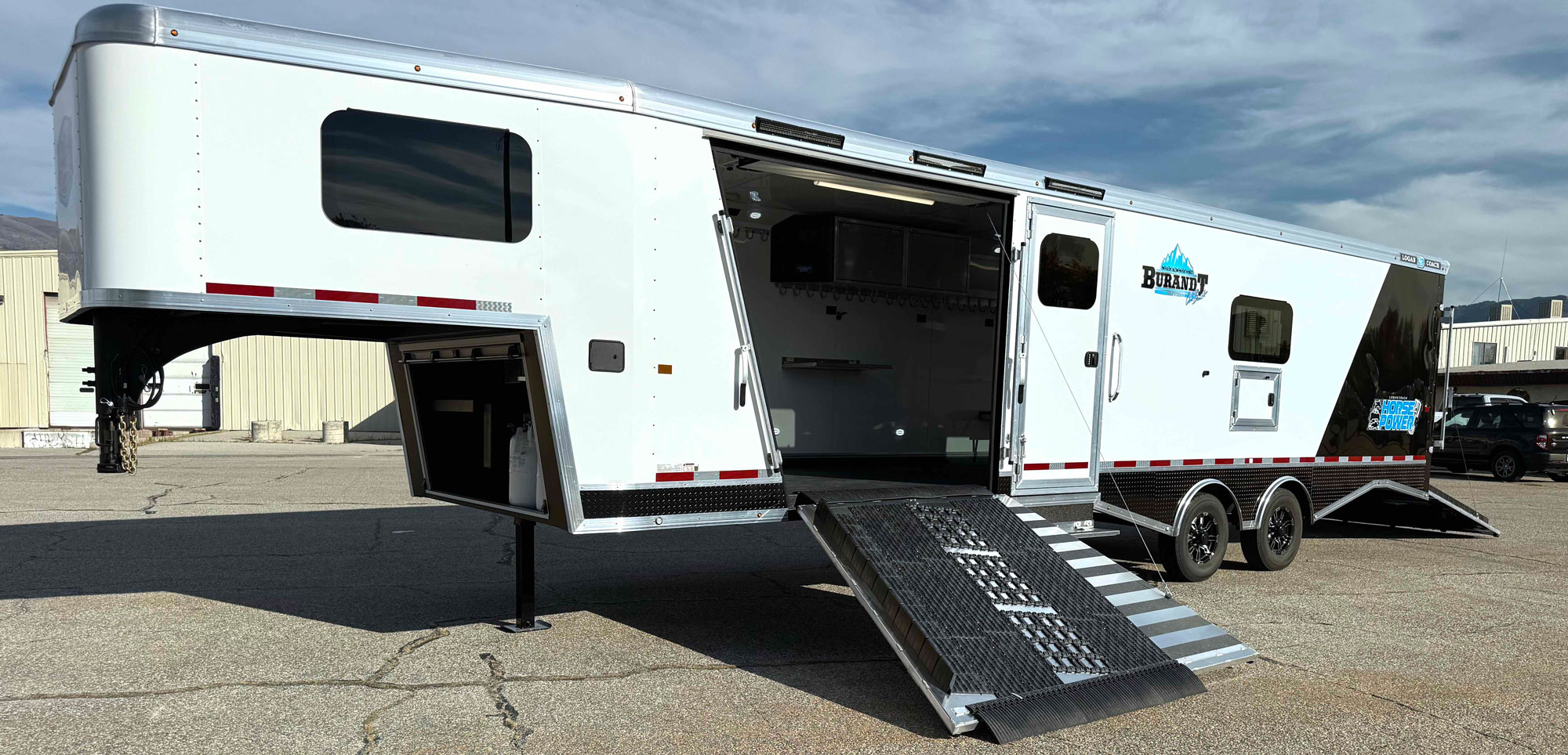 The Horse Power trailer was designed and built with the input of world-class riders to produce a high-end motorsports trailer with all the features needed to get you to and from your destination in comfort and style, while keeping you and your gear warm and dry. Chris Burandt, an innovator and leader in the Freestyle Snowmobile community has taken our best motorsport trailer and added some awesome tweaks for your weekend adventures!